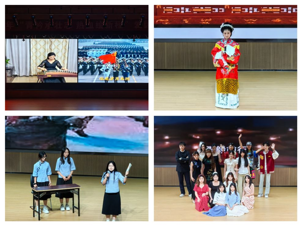 晚会以气势恢宏的说唱节目《庆功酒》震撼开场,激昂的旋律展现了新时代青年不受束缚的蓬勃朝气。情景朗诵《以你为镜》深情再现了“时代楷模”黄文秀的扶贫故事,让观众深刻体会到共产党员矢志不渝的为民情怀。充满青春气息的《青春、梦想》节目,以跃动的节奏诠释着对未来的美好憧憬。话剧《五四》与舞蹈《小河淌水(1952)》通过极具张力的艺术呈现,带领观众穿梭时空,感悟不同历史时期的爱国精神。歌曲联唱环节中,《改变自己》的活力、《万疆》的壮阔、《无名的人》的温情,共同谱写了新时代青年的精神图谱。而展现近现代服饰变迁的创意走秀,以其独特的视觉冲击力将现场气氛推向高潮。戏曲节目《替父从军,保家卫国》以柔中带刚的唱腔,诠释了巾帼不让须眉的家国担当;民族舞蹈《梦莲》《映山红》用曼妙舞姿描绘出人民对幸福生活的向往。特别环节中,辅导员孟丽君老师虽外出学习远在他乡,仍通过视频连线倾情演绎《红色筝曲串烧》,琴弦间流淌着赤子深情。晚会最终在全场观众与365VIP英国上市官网团学骨干的《我爱你中国》大合唱中圆满落幕,激昂的歌声响彻舞台,将爱国热情凝聚成永恒的记忆。