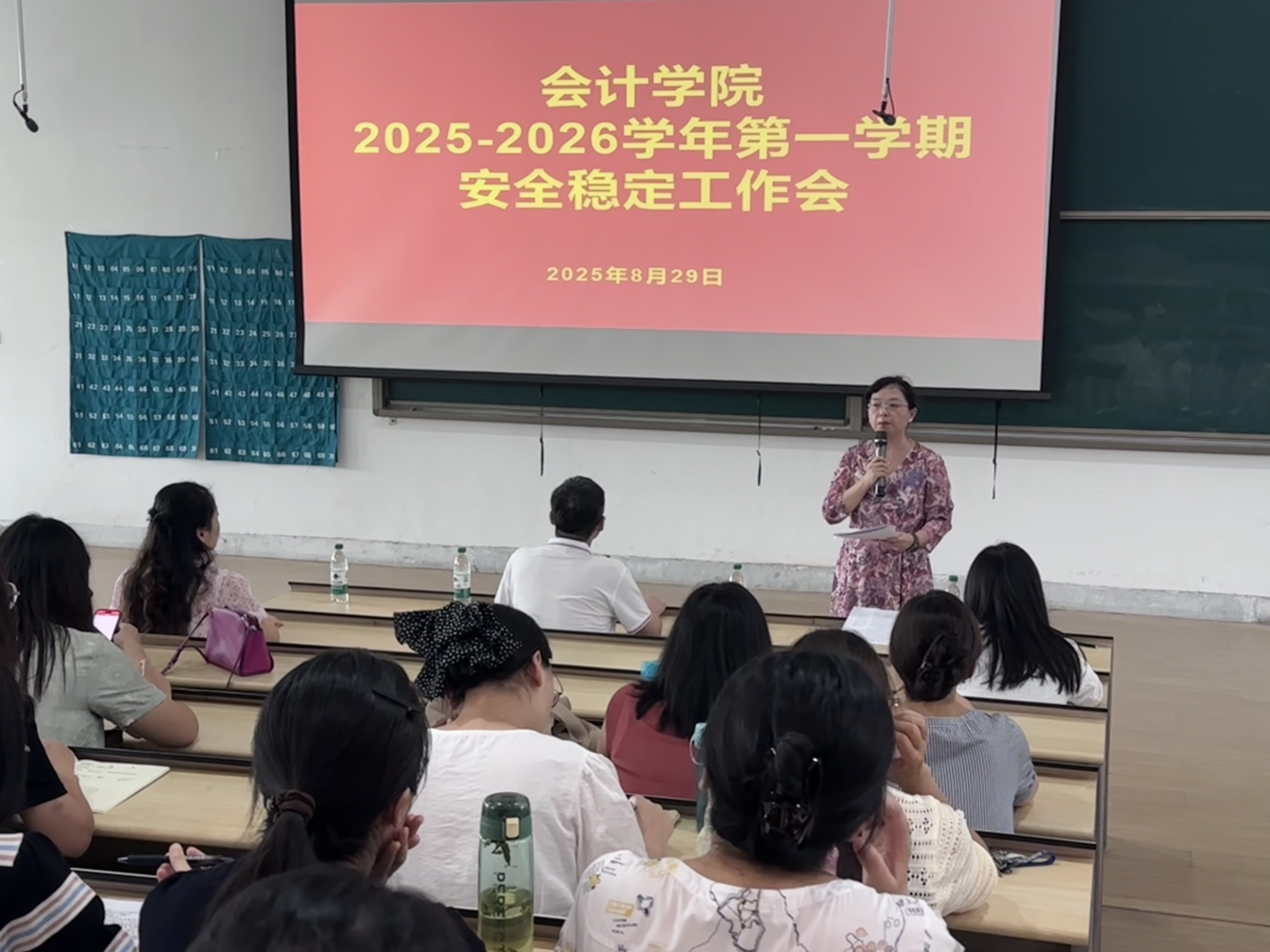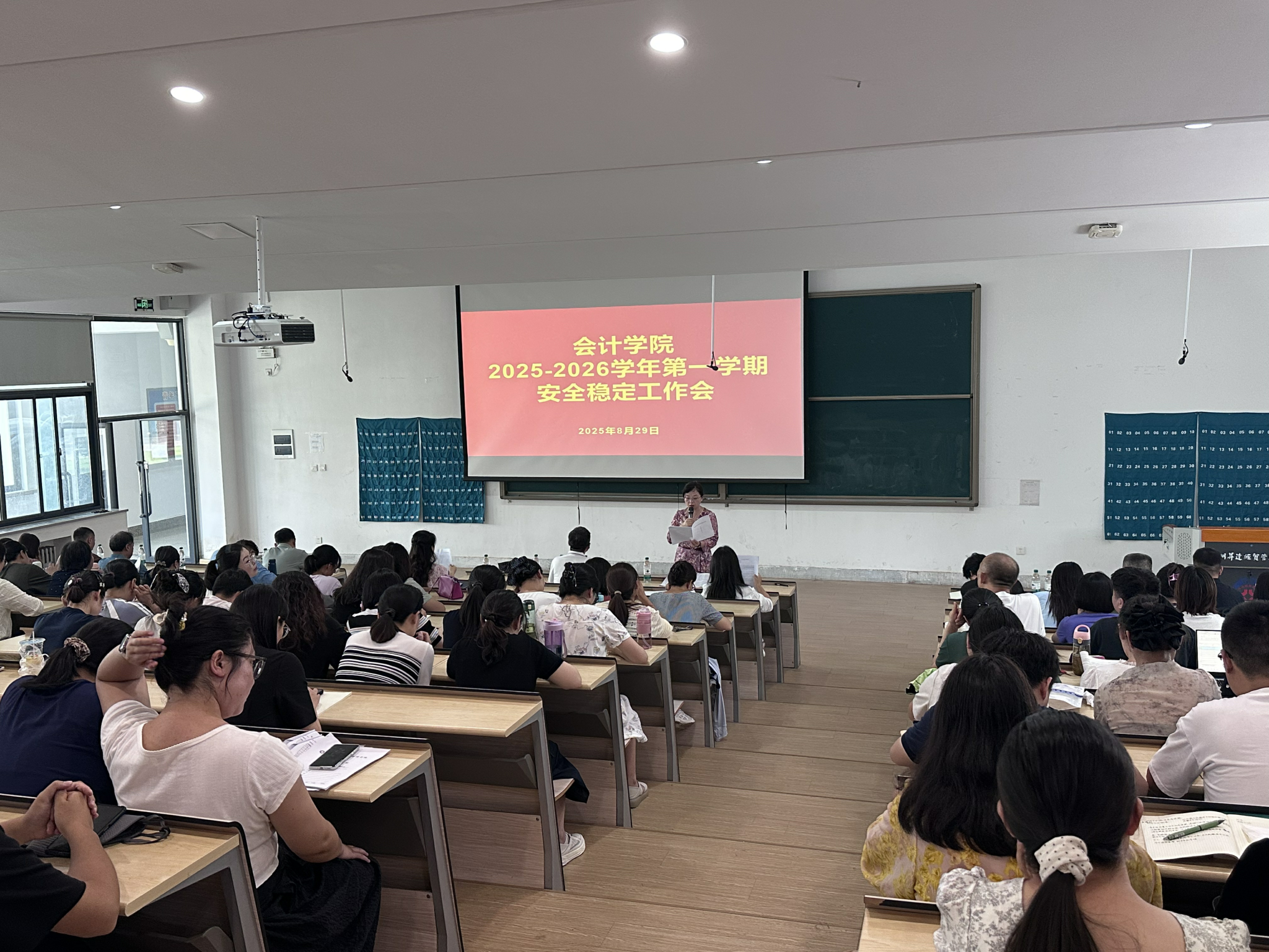 2025年8月29日,公司组织全院教职工在118教室召开秋季学期开学安全稳定工作会议。公司经理王宝庆,公司党委书记张蕾,副经理毕鹏翾、张新成,公司党委副书记陈刚出席会议。会议由公司党委书记张蕾主持。