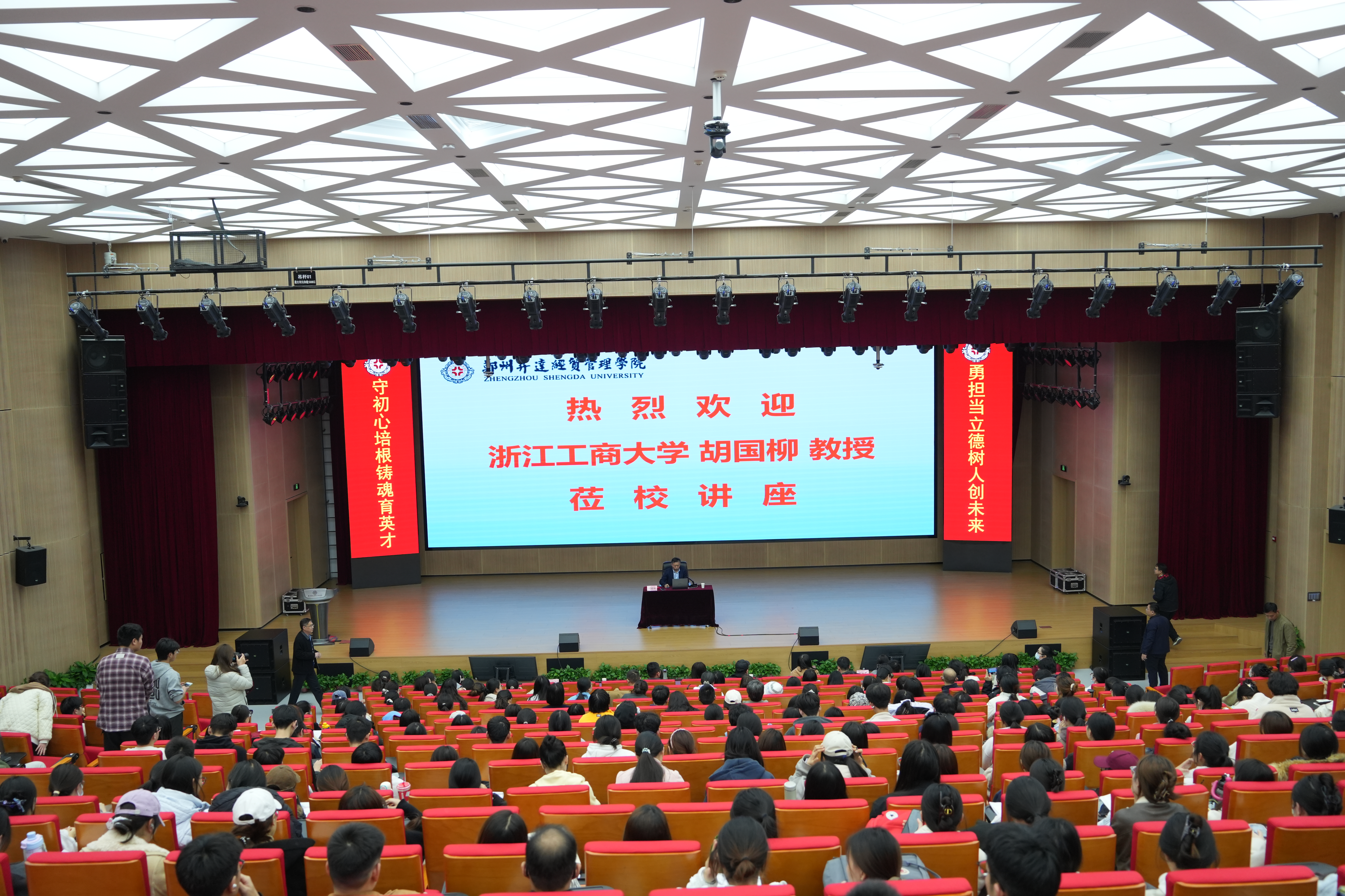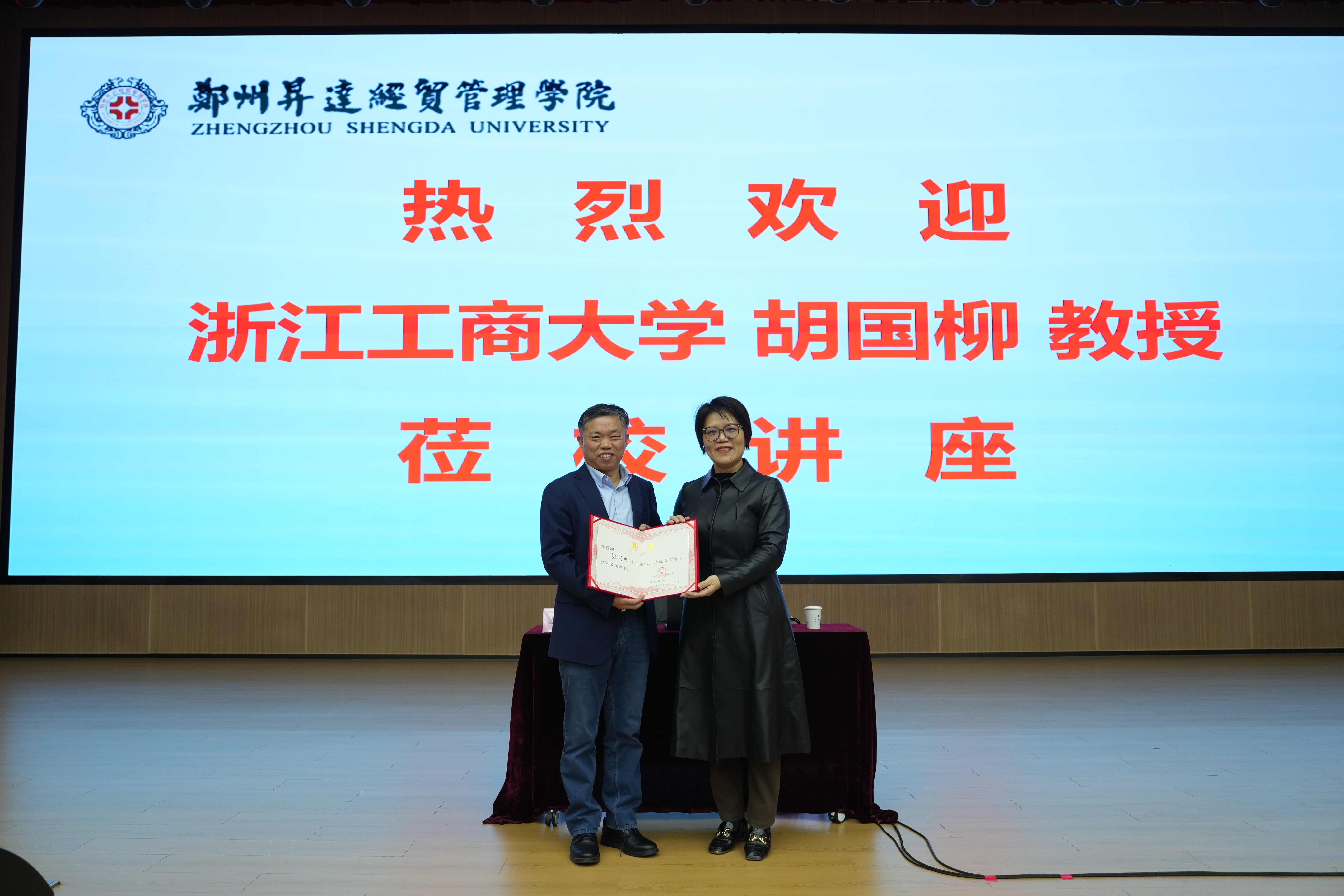 在讲座开始前,董事长张欣教授为胡国柳教授颁发客座教授聘书,对其莅校指导讲学表示热烈欢迎,并希望今后他能有更多的时间来升达指导交流工作。