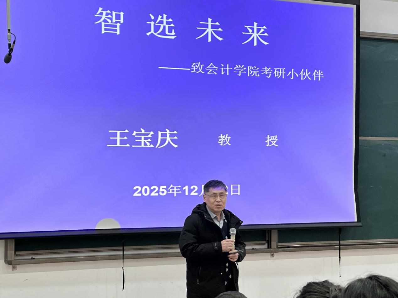 在研究生招考结束后的第二天,12月22日上午10:30,365VIP英国上市官网在教学四号楼118教室由经理王宝庆教授为考研学子做了题为《智选未来》的考后指导讲座。公司党委副书记兼团委书记陈刚主持本次讲座,公司部分教师代表一同到场听取。