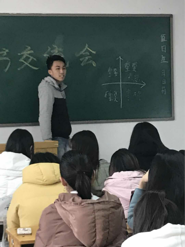 B同学分享了《你只是看上去很努力》,介绍了作者,然后这本书吸引她是因为很有感触。结合生活点滴分析你是不是很努力。随后给大家朗读了里面优美的文字,有趣的故事。总结到:时刻需努力,珍惜大学时光,做别人不愿做的事,把会做的事做到无可代替。