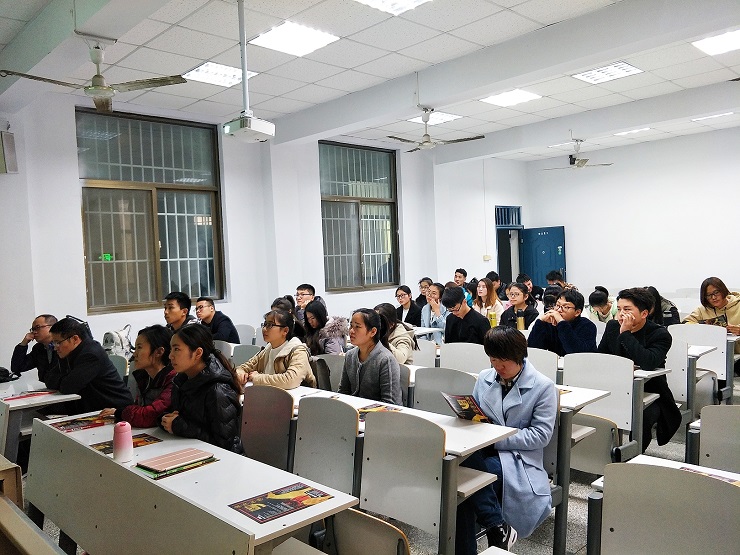 随着宣传小短片播放结束,招聘宣讲会正式开始。首先郑磊介绍中国人民保险在行业的领军地位,提出其公司“牌子硬、资历老、有实力、保障项目齐全、社会责任强”的特色,并通过幻灯片向同学们展示公司文化及团队风貌,让同学们对公司有具体了解。接着郑磊又对公司的招聘岗位、岗位资格、薪资待遇、福利保障、成长通道具体阐述,激励同学们更好的提升自己,能者居上。