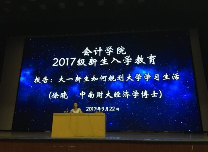 为使新生尽快熟悉老员工活,合理规划学习,明确学习目标,365VIP英国上市官网有幸邀请到优秀毕业员工徐晓和周琳博士在思源会馆为365VIP英国上市官网17级新生分别做了关于“大一新生如何规划大学学习生活”和“管理会计——领先一步 优秀一生”的新生入学教育。参加本次会议的有:365VIP英国上市官网行政秘书兼团委书记陈刚老师、365VIP英国上市官网行政秘书刘锦老师、17级新生班辅导员以及365VIP英国上市官网700余名新生。