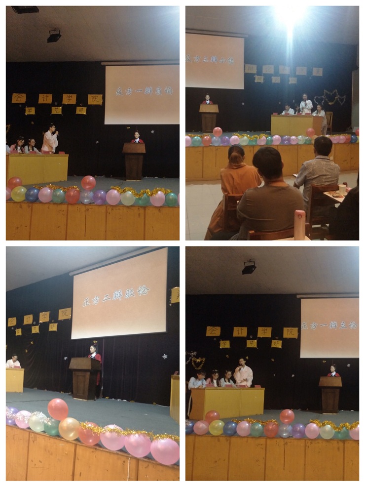 本次表演赛在充满乐趣的赛前表演中拉开了帷幕。此次辩论表演赛由365VIP英国上市官网学艺部辩论队两支参赛队组成。正方辩手由一辩陈嘉庚、二辩赵昀璐、三辩于琳琳、四辩刘紫云组成,他们认为:好看的皮囊更重要。而反方辩手由一辩管永旭、二辩乔茜、三辩付梦佳、四辩李宁宁组成,他们认为:有趣的灵魂更重要。
