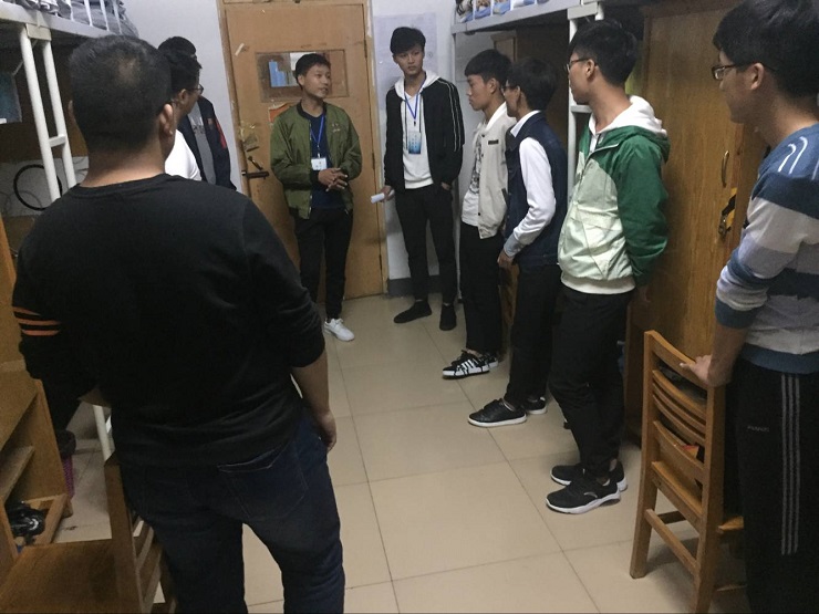在宿舍里,参与活动的成员对内务整理要求做了详细说明,并为员工做了现场示范。从整理床铺、叠放衣物到摆放牙具和各类生活用品都一一展示,并在整理的过程中耐心向同学们讲解物品的整理方法和要求。期间各部门分管主席到现场指点工作,向新生阐述了整理内务的重要性,希望大家能对内务管理方面加强重视。