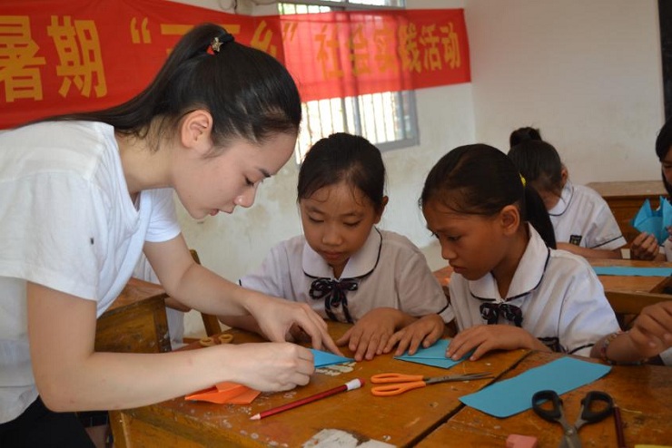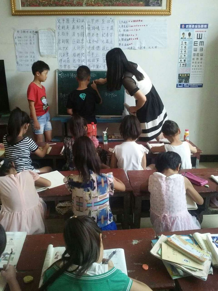 爬山结束后我们的辅导班也正式开始了。团队成员都各尽其能,对留守儿童们进行学习上的辅导,并尽最大努力为他们提供生活和心理上的帮助。在辅导班辅导的过程中,我们发现留守儿童学习成绩普遍不是很好,学习状况令人堪忧,有的孩子对学习缺乏热情,自觉性不强,还有的孩子日常行为习惯较差,这和孩子的家庭都有很大关系。我们在辅导的过程中通过对孩子们的引导和鼓励,让他们感受到学习的快乐,让他们知道自己是被重视的,从而促使他们进步。对于行为习惯较差的孩子我们循循善诱,让其明白文明礼貌的重要性。我们也发现大部分的孩子性格内向,不愿与人交流、分享,于是我们通过一些集体的小游戏让大家都参与其中,感受和伙伴们一起玩耍的快乐,从而不再封闭自己。同时我们就留守儿童教育方式的问题给部分家长提了一些建议,希望对孩子们的成长有所帮助。