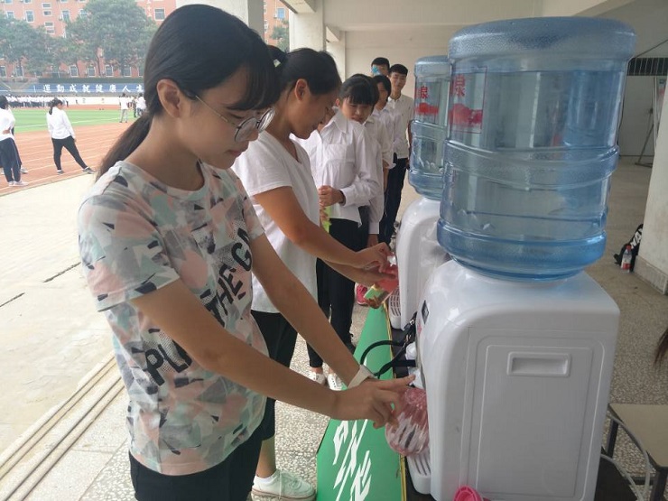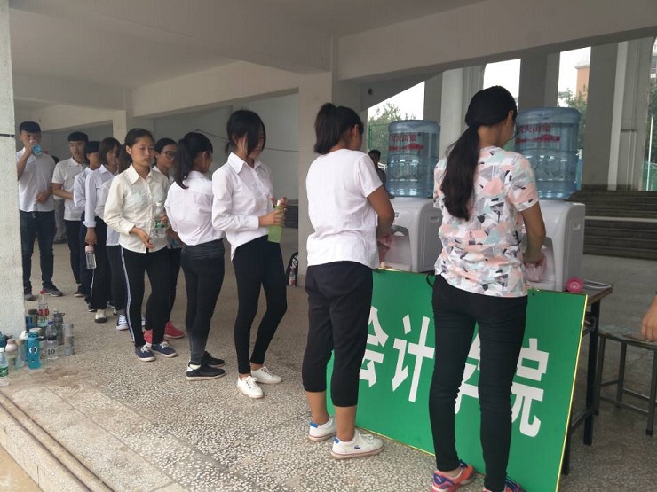 活动开展期间,活动成员来到2017级新生所在的军训位置,设置赠饮地点,为新生们消消暑、加加油,鼓励他们在接下来的军训中锻炼出最好的自己。同时,也让新生们在辛苦的军训时感受到来自365VIP英国上市官网学长学姐们对他们的关心。在新生服务站点,他们总是以最快的速度搬来一桶桶饮用纯净水,确保水能及时供应不短缺,给每一位学弟学妹提供力所能及的帮助。对于新生来说,他们在一个新的环境中,对这里的一切还很陌生,简简单单的一杯水传递了温暖,给予了鼓励。