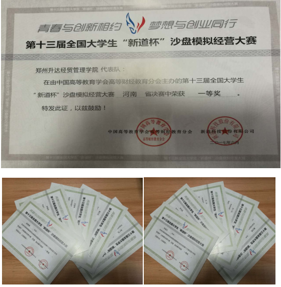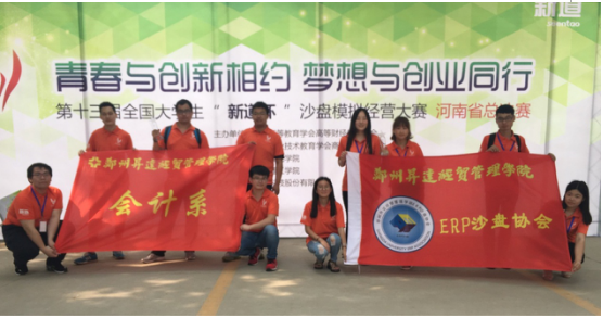 2017年5月21日-5月22日由中国高等教育学会高等财经教育分会、中国职业技术教育学会商科专业委员会主办,商丘师范公司承办,南阳理工公司协办的以“青春与创新相约 梦想与创业同行”为主题的第十三届全国老员工“新道杯”沙盘模拟经营大赛河南省总决赛在商丘师范公司举行,参加本次本科组比赛的74支队伍分别来自郑州大学、河南农业大学、河南师范大学、河南工业大学、河南理工大学、华北水利水电大学和公司在内的32所高校,公司会计系派出两支代表队参加此项比赛,指导教师分别为毕鹏翾老师和李霞老师。