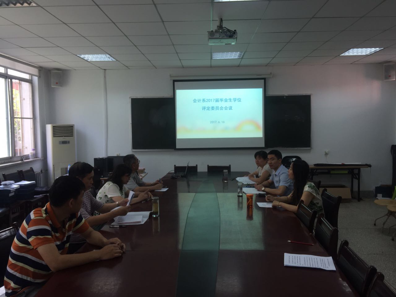 2017年6月16日上午,会计系在系会议室召开了2017届毕业生学位评定委员会会议,会计系学术委员会委员参加了此次会议。