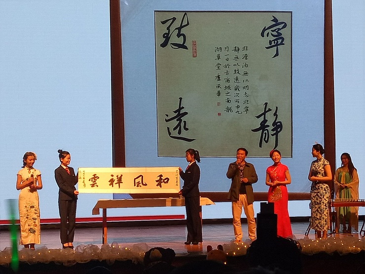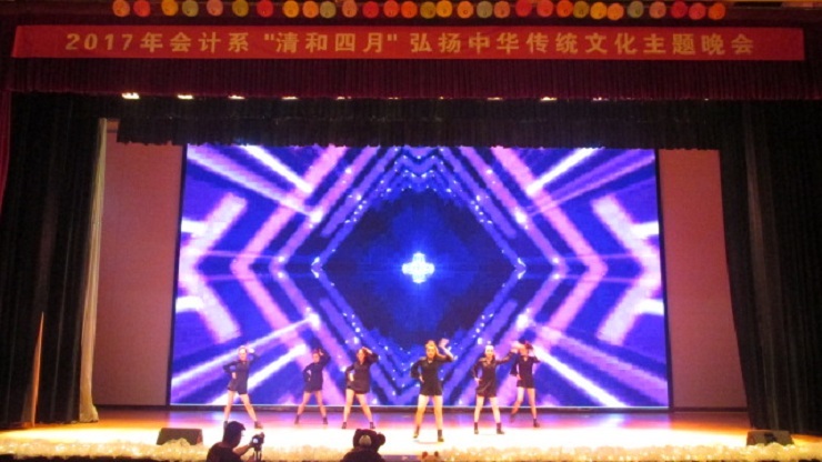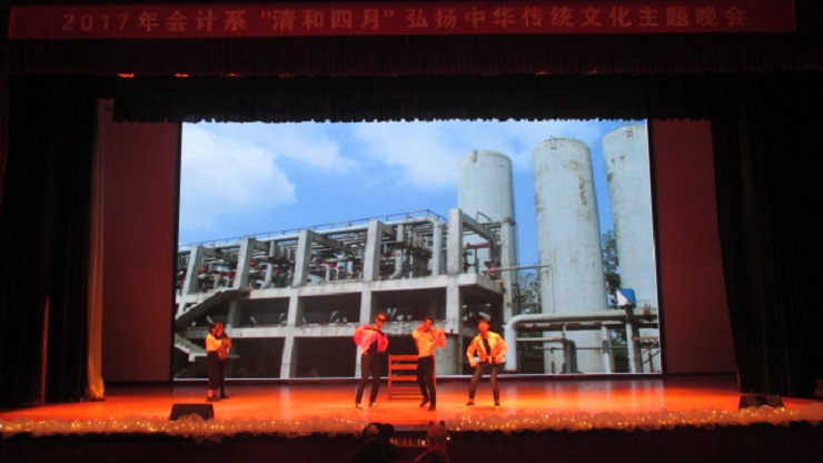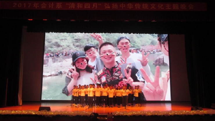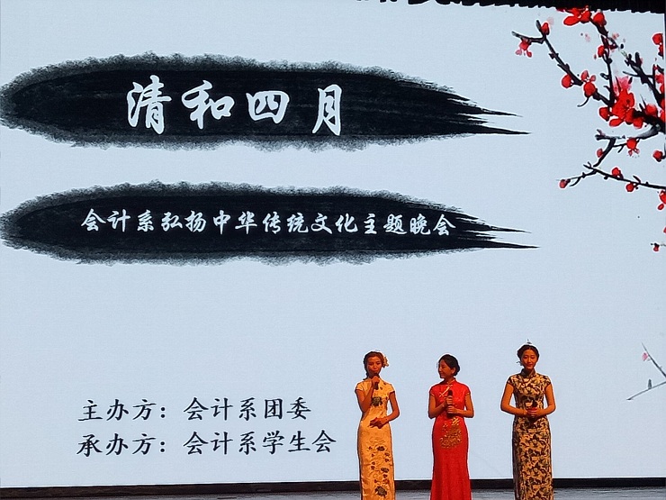 为了号召更多同学弘扬传统文化、传承民族精神,4月25日晚上6:40,由会计系团委主办、文艺部和礼仪部承办的“清和四月”弘扬中华传统文化主题晚会在公司思源会馆精彩上演,当晚出席晚会现场的有:中国书法家协会卢承华先生、会计系副主任范新安博士、会计系行政秘书兼团委书记陈刚老师、会计系行政秘书刘锦老师、王广亚教育思想研究中心凡锐丽老师、各系辅导员老师以及近2000名同学。