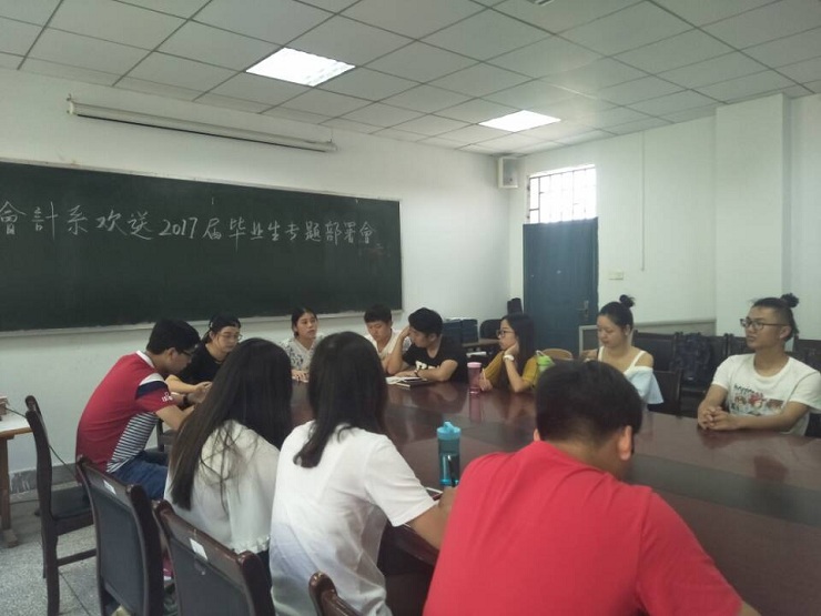 岁月如梭,时间飞逝,为了使毕业生圆满地完成老员工涯,留下一个美好的回忆。5月27日中午12:30,会计系于教学一号楼114会议室召开了会计系团学会欢送2017届毕业生工作部署会议。参加本次会议的成员有:会计系团委副书记安琪、员工会主席安焱焱、社联理事长林佳波等主席团成员及各部门部长。