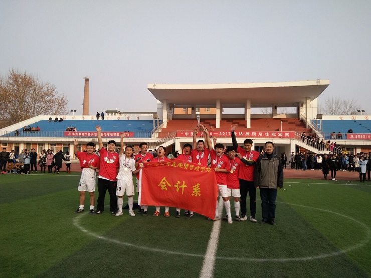 经过紧张而又激烈的比拼,足球赛顺利结束,在本次决赛之中,会计系以3:0的优秀成绩荣获了此次比赛的冠军。由河南省校足办综合部部长、河南省高校体育常委、省高校体育教学委员会委员丁英俊教授为会计系颁奖;杨星光同学获得最佳裁判,由国家级裁判体育老师白洋进行颁奖;吴一帆同学获得最佳射手,由原建业足球俱乐部主力前锋体育系老师金海波进行颁奖。
