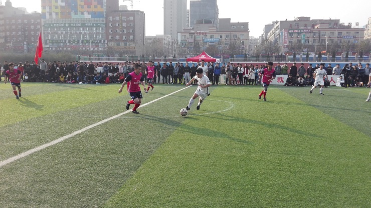 明媚的眼光照耀在田径场上,伴随着口哨的响起,比赛拉开了帷幕。在比赛过程中,赛场外,有的地方人声鼎沸、有的地方笑声一浪高过一浪、有的地方呐喊声一声高过一声。赛场上,双方队员那一个个华丽的躲闪、漂亮的铲球、迅猛的突击,一次次的牵动着观众的心,让人不由得为之呐喊。