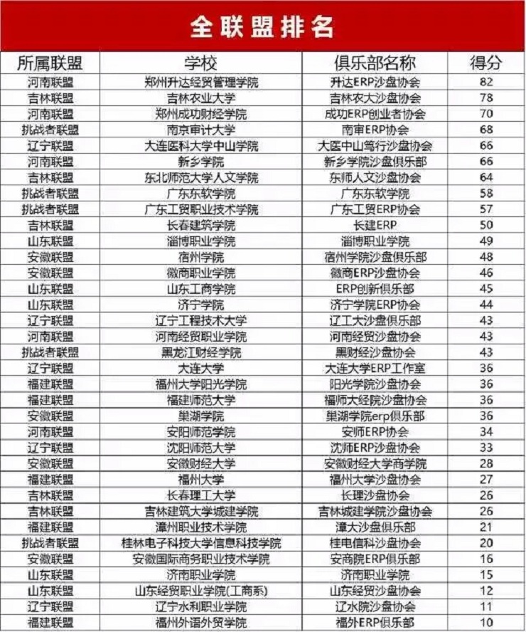 公司会计系ERP沙盘协会会长王剑坤带领协会成员徐广利、黄文杰、皮静静组成公司代表队,在会计系副主任、ERP沙盘协会指导老师毕鹏翾副教授的指导下,面对其他六个联盟众多对手,认真分析、沉着机智、团结协作、顽强拼搏,表现出了较高的素质,充分反映了公司学子积极上进、勇于争先的精神风貌。经过一个半月的比赛,我系参赛队带领河南联盟其他四所高校(郑州成功财经公司、安阳师范公司、河南经贸职业公司、新乡公司)荣获超级联赛区域联盟第一,且公司为全联盟第一,在参加比赛的35所高校中以82分的成绩位居榜首,为公司争得了荣誉。