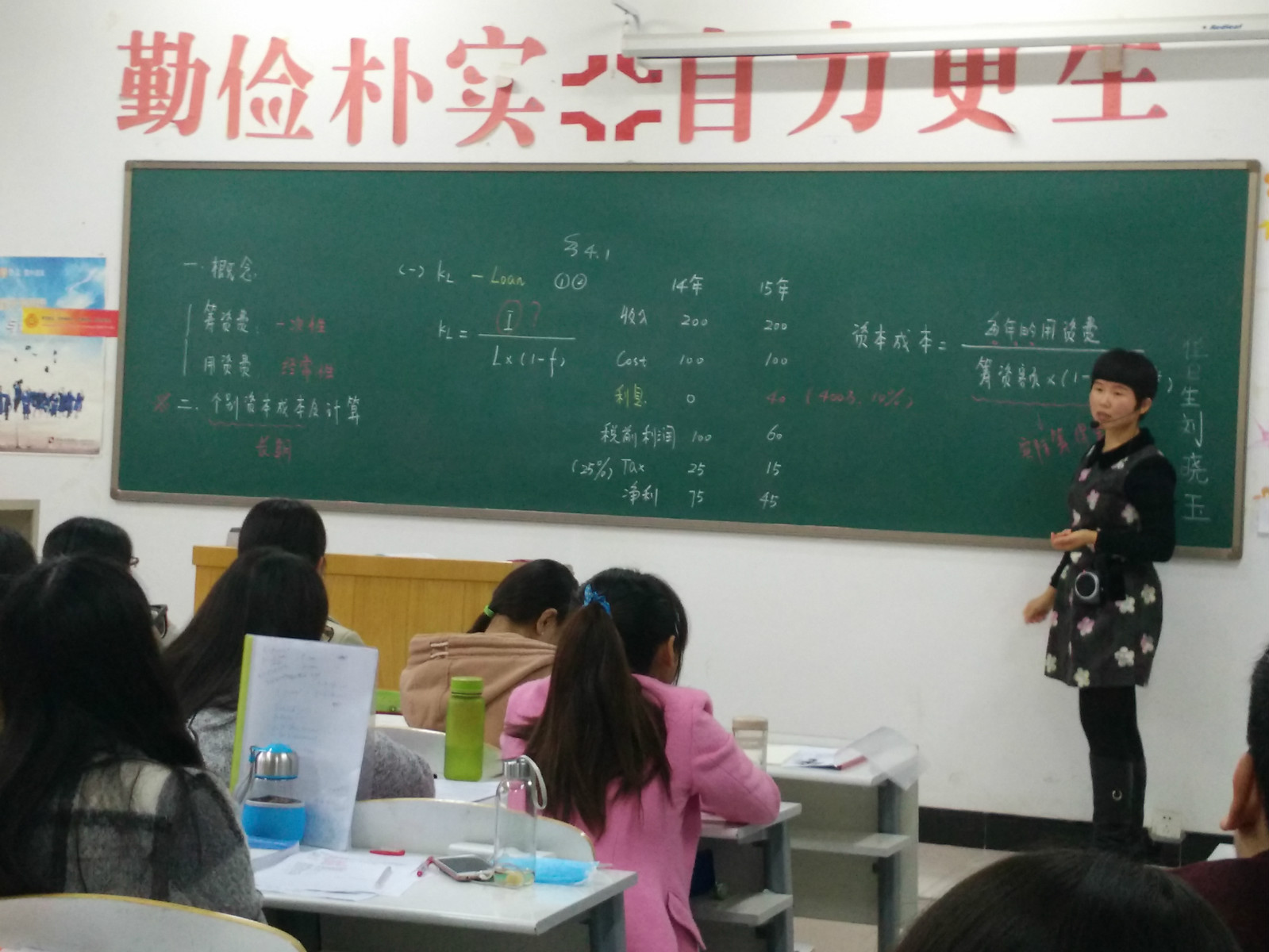 《财务管理》课程历来是会计系相关专业的主干核心课程,蒲敏老师在讲课过程中教态亲切,采用启发式教学及案例教学方法逐步导入本节课内容----资本成本,不断引导员工主动思考,提高员工学习兴趣,让员工在轻松愉悦的课堂氛围中掌握知识。