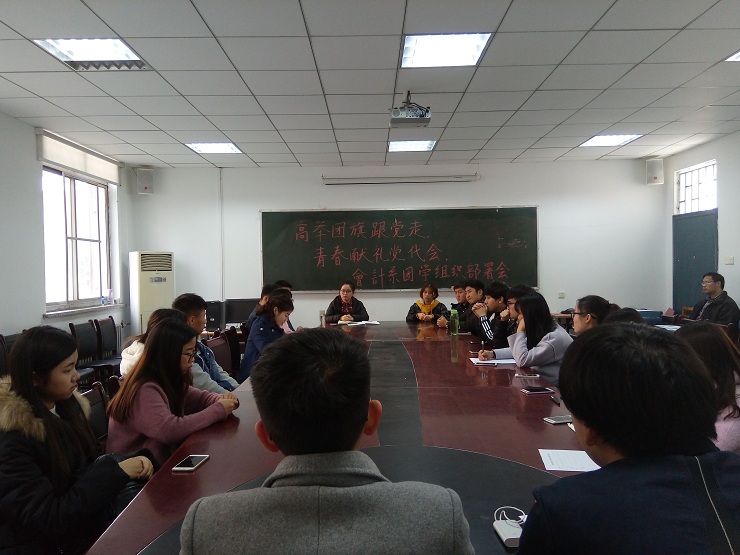 为喜迎党代会的召开,在全系营造积极向上的舆论氛围,11月10日中午12:10,会计系团学会工作部署会议在教学一号楼114教室顺利举行。会计系行政秘书兼团委书记陈刚老师,团委副书记安琪,员工会主席安焱焱,社联理事长林佳波等主席团成员及各部门部长、社长参加了此次会议。