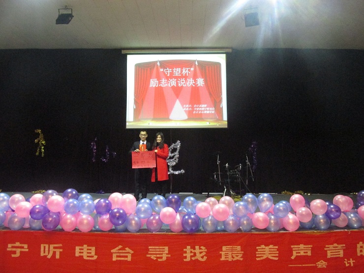为了增强同学们热爱生活的热枕,让同学们对老员工活有更加深刻地思考和规划。11月14日晚上6:30,由会计系团委主办、“守望你的宁听”网络电台承办的会计系“守望杯”励志演讲比赛决赛在龙湖报告厅拉开帷幕。莅临比赛现场的嘉宾和评委有:会计系行政秘书兼团委书记陈刚老师、16级辅导员郑杰老师、蔡艳丽老师、李伟丽老师、会计系员工会主席安焱焱、会计系社联理事长林佳波,“守望你的宁听”前社长宋珂珂、龙翔车行负责人杨帆,嘉宾张干、孙安林、麻凯林、王宁等。