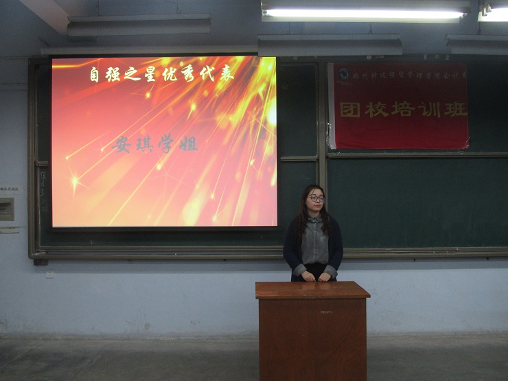 为了引导会计系团员青年学习成才、创业创新,同时养成文明言行、自强不息的优良习惯,11月17日晚6:00,会计系“2016年自强之星”优秀典型代表分享交流会在会计系教学一号楼111教室举行。“自强之星”优秀代表安琪、党员代表杨媛媛、张金锡、团员代表张玉博、徐林林、姜越及团校班全体成员参与了本次会议。