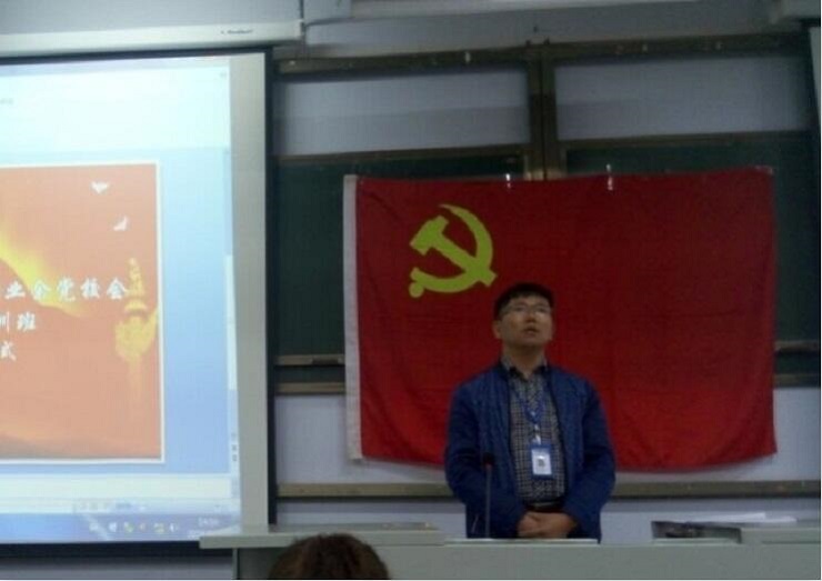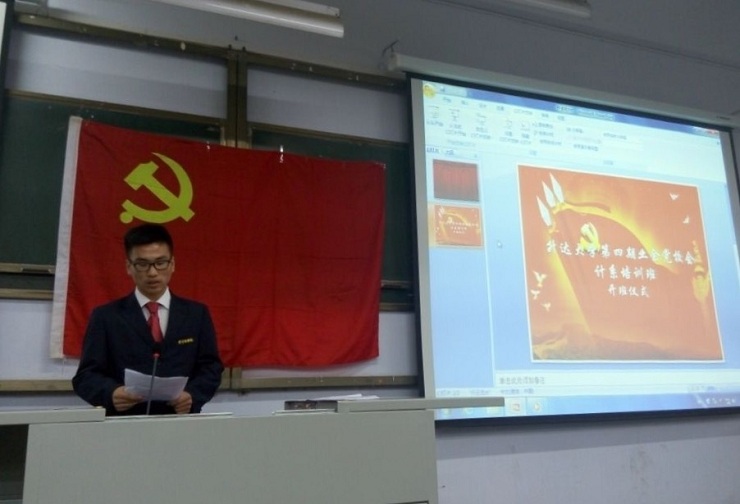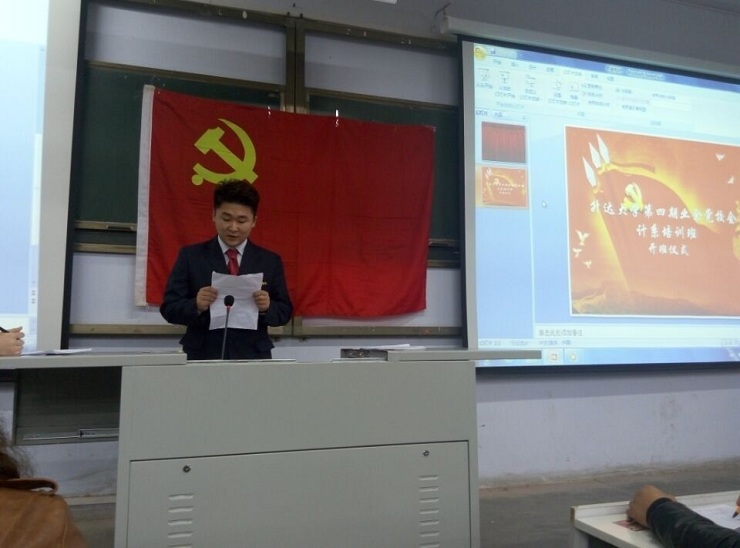 接着,由入党积极分子代表李建宇同学发言,他讲述了自己对党的认知和加入共产党的决心。