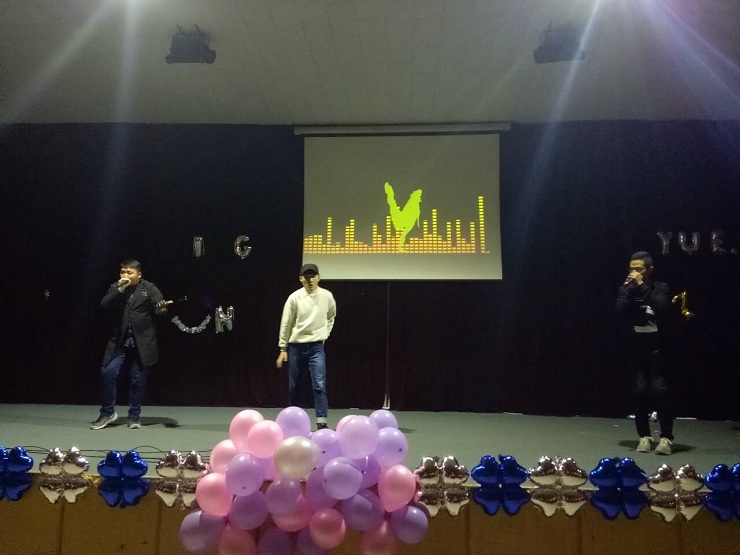 晚会由爱乐社的乐队演奏地两首歌带动了全场的气氛,同学们热血沸腾,欢呼声、鼓掌声此起彼伏,随后舞蹈《run&run》再次将全场活跃的气氛带起。由风采部带来的《忽然之间》带领我们走进了安静祥和的音乐殿堂。综艺俱乐部《空城计》融合多重元素,以诙谐幽默的语言及表演风格让同学们忍俊不禁。风纪部相声《员工也疯狂》也增加了同学们高涨的热情。