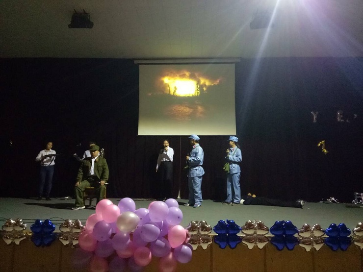 学艺部朗诵《我骄傲,我是中国人》慷慨激昂,震撼人心,让我们领略到作为中国人的民族自豪感,朗诵结束后国歌响起,报告厅里的人员全体肃立。随后,由守望你的宁听社团演出的《食“送”红军》话剧让我们回到了那段艰苦的岁月,此节目突出表现红军将士在长征途中浴血奋战、克服艰难险阻的战斗生活,歌颂了共产党人坚定信念、追求理想、敢于牺牲、勇往直前的精神品格,极大地鼓舞了在场师生发愤图强、奋发有为的决心,同时也表现了会计系学子积极向上的校园生活,突出了长征的历史传承和新的时代内涵。