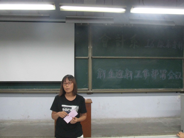 为迎接即将到来的16级本科及专科新同学,完满完成公司安排的工作。9月7号晚上7:10,会计系团学会在教学1号楼111教室举行了本专科迎新部署大会。 会计系团委副书记安琪、员工会主席安焱焱、还有全体主席团成员及全体部长及副部长参加了本次会议。