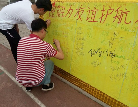 有趣激烈的游戏过后,还有一个以“友谊之路,理解相伴”的签字墙活动,每个同学张扬个性的签名,记下了今天的快乐和收获。