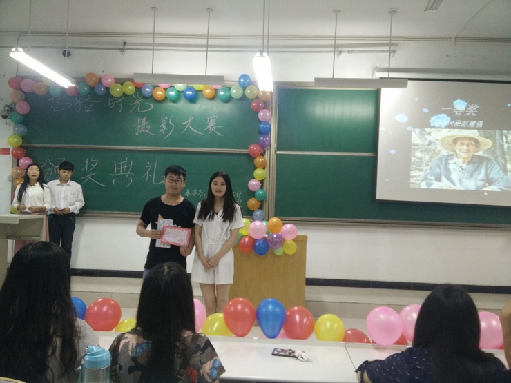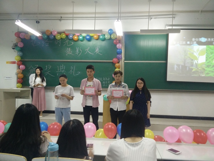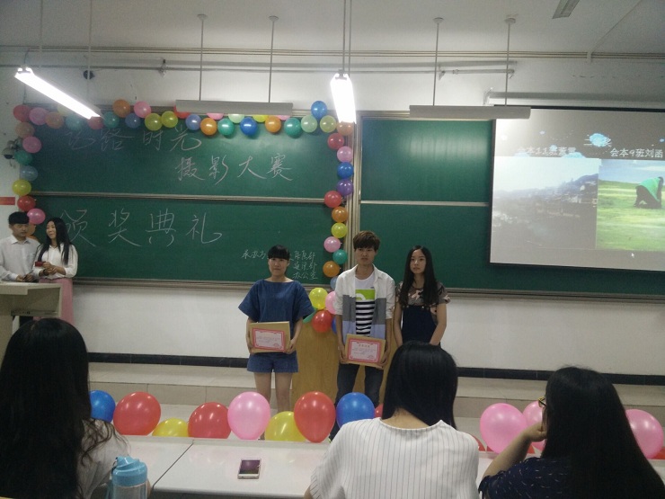 当我们还沉醉于参赛作品的美妙之中,不能回神时,最令人激动的时刻到来了。主持人依次公布了各类奖项,获得一等奖的有13级会本9班赵建强,二等奖的有15级会本11班董雪,15级会本9班刘涵,三等奖的有15级审计2班赵吾阳,15级会本13班任宗娇等,最佳视觉奖财本4班高鹏云等,并由会计系团委副书记成磊,书记助理乔志华,书记助理孙小亮和办公室主任花李莉依次为他们颁奖并合影留念。他们脸上的笑容是他们努力的成果,他们手中的证书是他们自信观察生活的体验,她们美丽的作品是她们自豪的资本。我们真心为他们深感骄傲,同时我们也学会了透过镜头看世界,发现想不到的美。