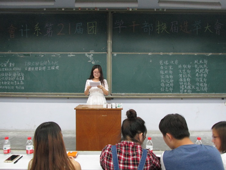 此次换届选举会为团学会注入新的血液,充分展示了会计系团学会成员精神风貌与认真负责的工作态度,相信会计系团学会将会在新一届团学会干部成员们的共同努力下变得更加美好。