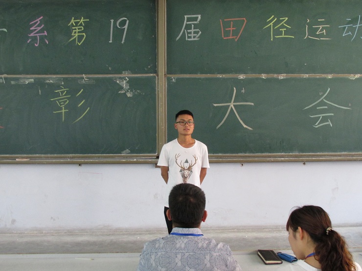 接下来,为本届运动会的运动员们颁奖。获得一等奖的同学有张世平、秦欢欢、郭叶帅、朱文磊、高芳,郭舒晴、闫冠鹏。获得二等奖的同学有秦欢欢、尚福民、陈晓雯、赵宇、王雪艳,获得三等奖的同学有马春艳、金琳娜。由行政秘书兼团委书记陈刚老师为获得一等奖的同学颁奖,由行政秘书刘锦老师为获得二等奖的同学颁奖,由田径队训练负责人杨煜老师为获得三等奖的同学们颁奖。还有一大批同学都在运动会中获得了很好的名次。陈刚老师也再次对所有运动员们取得的成绩表示祝贺,同时也赞扬他们这种不断进取、奋力拼搏的精神。最后,由运动员代表张震同学做了发言,他表示接下来的一年他将带领运动员们总结成功经验,找出不足,吸取教训,争取在下一年的运动会中再创佳绩。