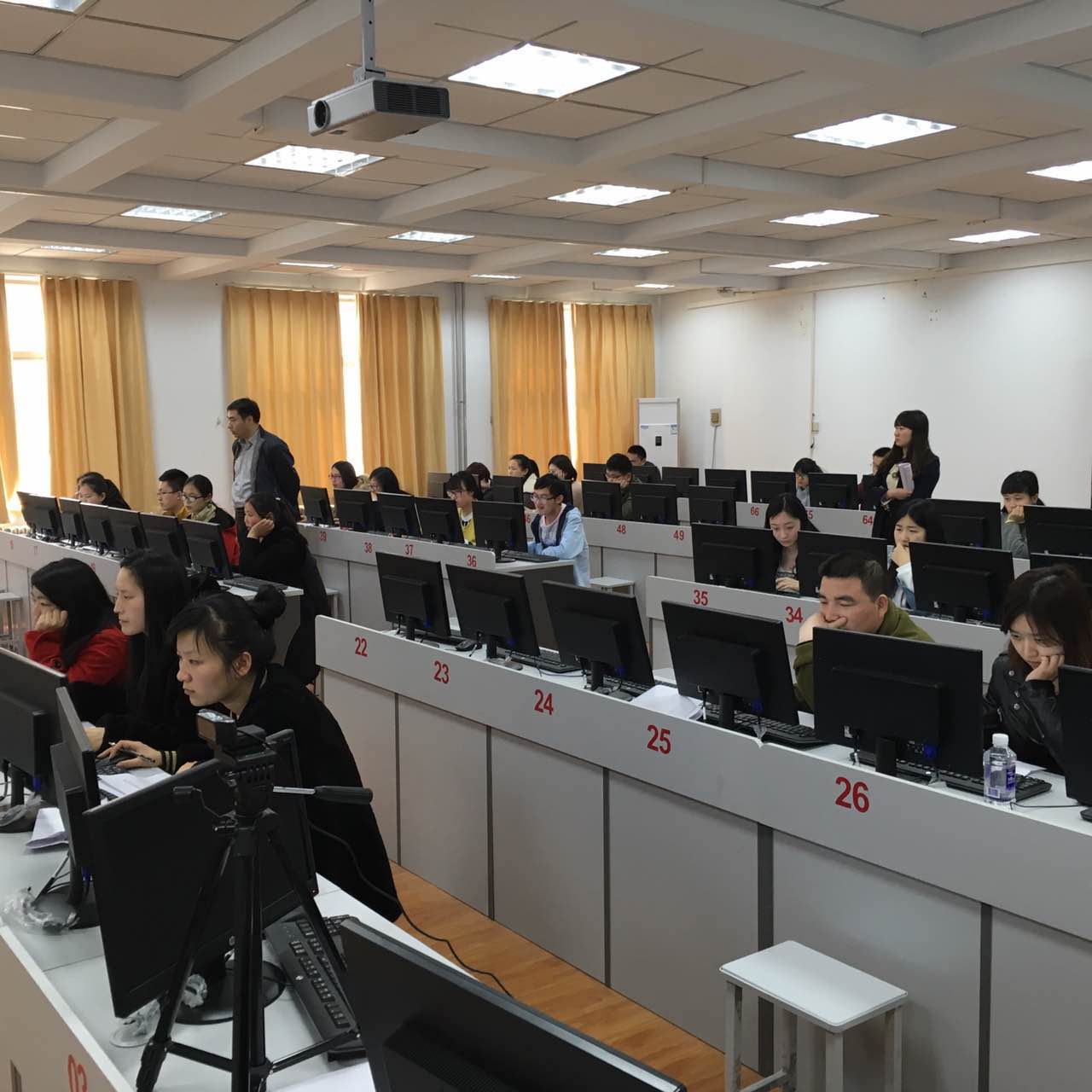 3月26日下午14:00,2016年第一季度河南省会计从业资格考试在商管楼二楼准时开始,本次考试分两个考场,共114名考生参加考试。本次会计从业资格证考试实行无纸化考试,上级机关对公司的监考及考务工作提出了严格要求,由于领导重视,考务工作组织严密,考试现场秩序井然,在全体考生和监考老师的共同努力下,历时三个小时的考试顺利结束。
