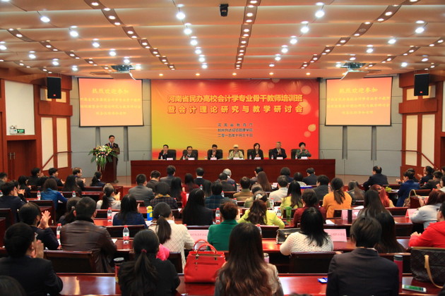 10月30日,由河南省教育厅主办、公司承办的河南省民办高校会计学专业骨干教师培训班暨会计理论研究与教学研讨会在国际会议厅隆重召开。出席开幕式的上级领导有:河南省教育厅政策法规处施晓春副处长,河南注册会计师协会张连升会长;出席开幕式的北京专家有:中国著名会计学家、获国务院特殊津贴、原财政部财政科学研究所副所长、研究员、博士生导师王世定教授,财政部财政研究所财务会计研究室副主任、中国资产评估协会专业技术委员会委员、博士生导师徐玉德研究员;出席开幕式的嘉宾有:台湾广兴文教基金会秘书长陈坚德,郑州成功财经公司副经理吴泽强;出席开幕式的公司领导有:董事长王淑芳,经理崔慕岳教授,党委副书记戎庭银,副经理张洁、张金安,执行董事王新奇,副经理段丰乐、张欣;出席开幕式的还有来自中南财经政法大学和河南财经政法大学的专家以及黄河科技公司、郑州成功财经公司、郑州大学西亚斯国际公司、河南大学民生公司、安阳师范公司人文管理公司、河南理工大学万方科技公司、郑州科技公司、中原工公司信息商务公司、郑州工业应用技术公司、商丘工公司、商丘公司、信阳师范公司华锐公司、郑州财经公司、黄河交通公司、郑州澍青医学高等专科公司、焦作工贸职业公司、洛阳科技职业公司、南阳职业公司、信阳涉外职业技术公司、许昌陶瓷职业公司、郑州电力职业技术公司、郑州理工职业公司、郑州信息工程职业公司、周口科技职业公司等26所省内民办院校的100余位代表。研讨会开幕式由段丰乐副经理主持。