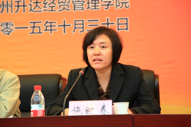河南省教育厅政法处施处长发表了讲话。她说,对于此次研讨会的召开,她充满期待,她代表教育厅政法处希望本次研讨会能对民办高校的会计学专业的发展指明方向,预祝开幕式和培训会圆满成功。同时也对升达承办此次会议表示感谢。