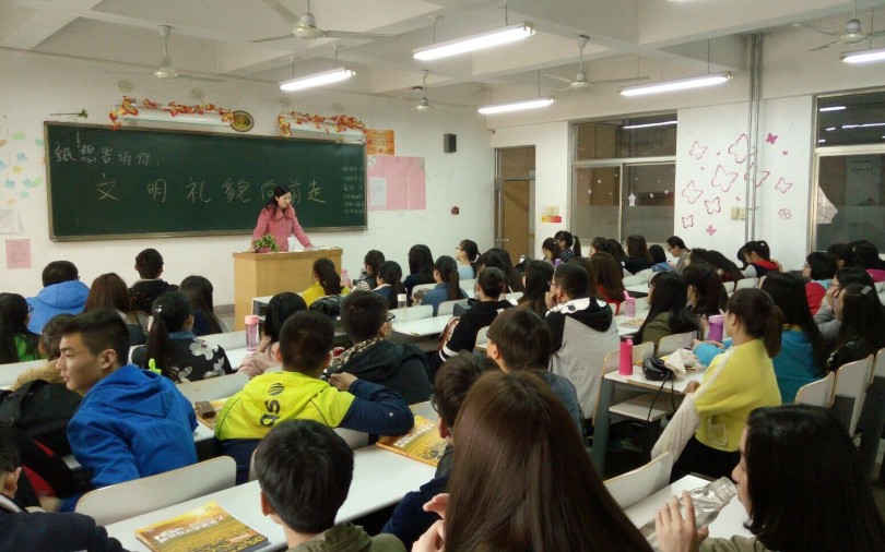 为了贯彻落实创办人办学育人理念,积极响应公司有关开展文明校园创建活动的号召,并结合学务处要求开展的“文明礼貌月”主题教育活动,会计系结合本系实际,于本学期创新开展了----辅导员优秀班会公开听课系列活动,本次主题班会是陈姣老师的“‘纸’想告诉你:文明礼貌向前走”。召开班级是15会本11班,会计系团委书记兼行政秘书陈刚老师、辅导员陈晓老师、远洋老师参加了本次班会活动。