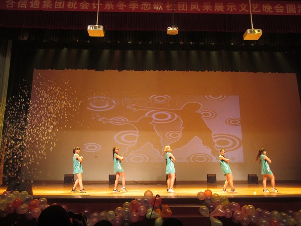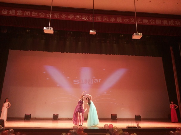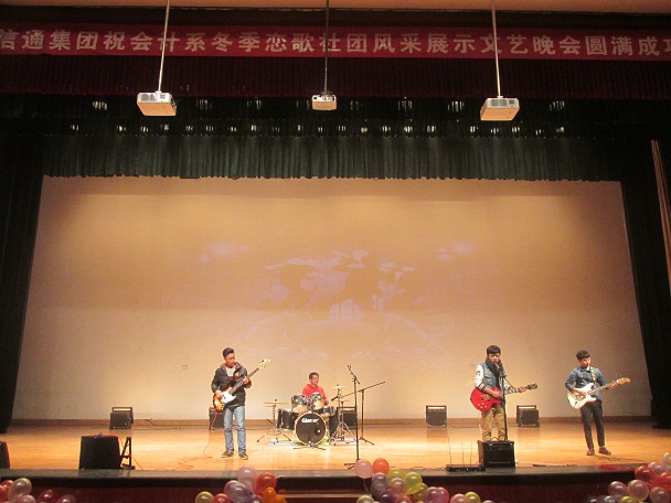 为了丰富会计系员工的课余文化生活,给2015级新生提供一个实现梦想、相互交流、相互学习的平台,充分展示我系员工社团健康向上、积极进取的风采。12月10号晚7:00,思源会馆灯光熠熠,热闹非凡,由会计系团委主办、会计系社团联合会承办的2015年“冬季恋歌”社团风采展示文艺晚会倾情上演。此次晚会的特邀嘉宾有:会计系副主任毕鹏翾副教授,公司党委办公室王佳老师,院团委宣传部部长石守金老师,西泰山先锋幼儿园刘丽娟园长、乔亚龙园长,会计系行政秘书兼团委书记陈刚老师,会计系行政秘书刘锦老师,会计系常务团委副书记焦阳老师,会计系教学办公室李恒基老师,会计系15级全体辅导员老师,会计系团学组织全体干部以及公司、各兄弟系相关员工干部,会计系近两千名员工一同观看了此次晚会。