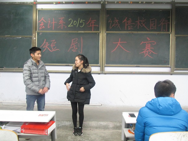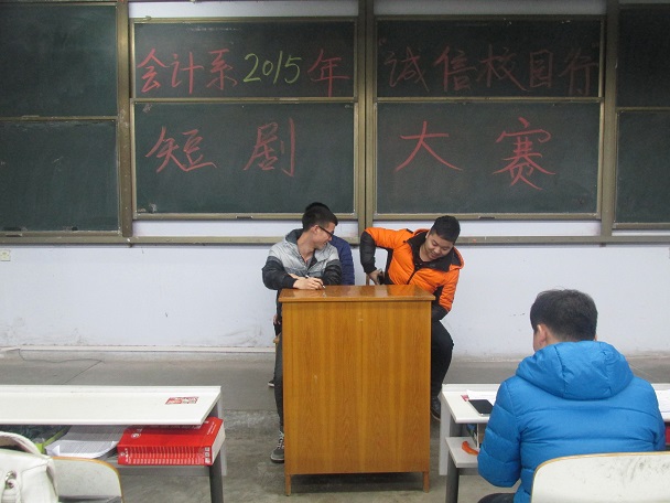 为了宣传国家资助政策及相关知识,培养广老员工的诚信观念,促进升达员工资助工作持续,健康发展。12月16日晚上6:30,由会计系政论部举办的“诚信校园行”校园话剧大赛于教学一号楼108教室顺利举行,当晚出席的嘉宾和评委有:会计系党务工作专员、辅导员彭丽老师,辅导员张振中老师,员工会主席汤嘉伟,团委书记助理乔志华、张雅,会计系通讯部部长王丹,活动受到会计系领导们的高度重视。