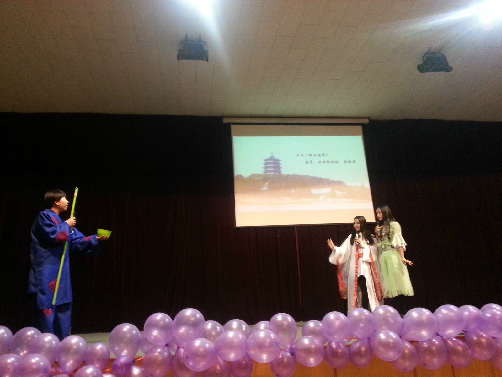由会电专七班带来小品《新白蛇传》更是直接将晚会带向高潮,当法海出现时台下一片欢呼,演员们惟妙惟肖的表演引得大家捧腹大笑。