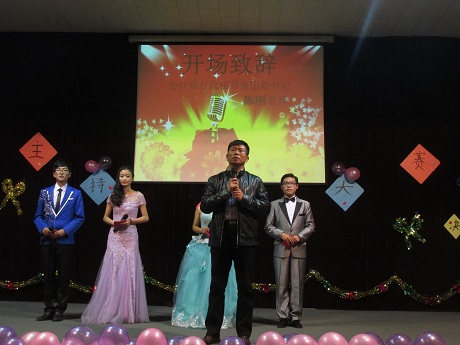 “给你一支话筒,声动整个舞台”。初赛和复赛激烈的场景还未在大家的脑海中褪去,翘首以望的决赛蓄势待发。11月9日晚6:30由会计系学艺部举办的会计系第六届“挑战金话筒”主持人大赛在龙湖报告厅拉来帷幕。出席此次比赛的嘉宾有会计系行政秘书兼团委书记陈刚老师、13级辅导员张振中老师、郭俊东老师,会计系团委副书记成磊、会计系员工会主席汤嘉伟、会计系员工会副主席温冉冉、院广播中心周蕊、会计系风采部部长郭鹏辉以及各兄弟系学艺部部长;出席此次比赛的评委有院广播中心罗冲、会计系文艺部部长卫亚坤、会计系优秀主持人乔令锐、会计系演讲队队长连闯。