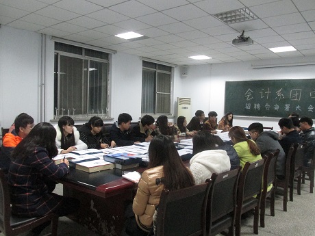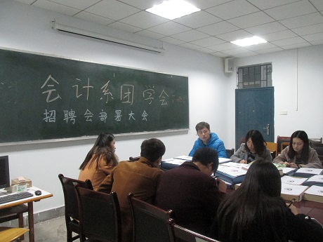 为了做好2016届会计系毕业生就业工作,让更多有才华的会计精英走进职场。11月11日晚上6:30,会计系团委于教学一号楼114会议室召开了会计系招聘会部署大会。会计系行政秘书兼团委书记陈刚老师、团委副书记成磊、员工会主席汤嘉伟等主席团成员及各部门部长出席了此次大会。