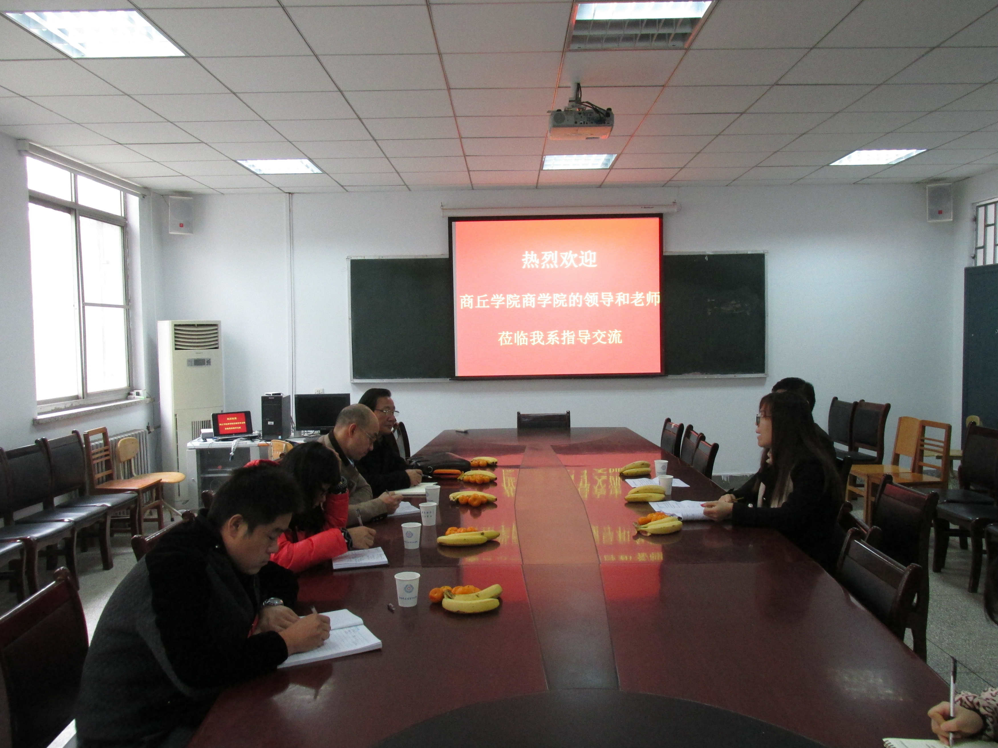 11月19日上午十一时许,商丘公司商公司杨经理,带领三位教研室主任,莅临公司会计系进行考察交流。会计系主任和书记在系会议室接待了杨经理一行。
