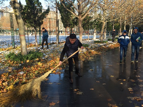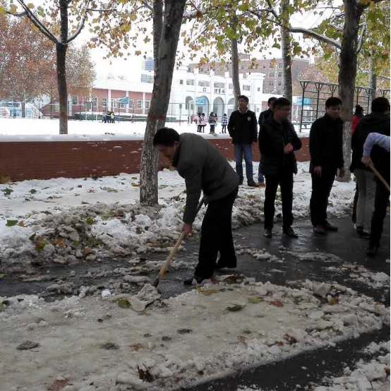 24日与25日下午3:30,会计系连续两天组织全系职工开展扫雪除冰活动,会计系党总支张红阳书记亲自对全系职工进行动员,并带领大家一起领取工具,铲除积雪。会计系主任张欣副教授和会计系党总支张红阳书记不畏严寒,率先开始投入活动,会计系行政秘书兼团委书记陈刚老师、行政秘书刘锦老师也迅速组织大家分发工具、划分区域,老师们看到此情此景,纷纷表示不甘落后,积极投入清理积雪工作,场面热火朝天。