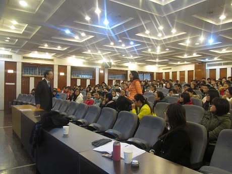 伴随着大家热烈的掌声,主讲人龚兴隆博士面带微笑地走上台。用幽默的语言,丰富的神情使演讲精彩纷呈,会场内掌声不断,也使场内的氛围变得更加活跃、热闹开来。首先,龚兴隆博士讲述了“专业能力;保密性;诚实正直;客观性;职业道德冲突”这五点管理会计师职业道德准则,并希望会计系员工能够以高标准严格要求自己。接着龚兴隆博士与在场师生分享了他多年担任跨国公司财务总监的工作及生活经验,并以切身经历告诫大家,要想在这个就业形势紧张,工作压力巨大,贪污受贿现象严重的社会中出淤泥而不染,必须要坚守道德的底线,面对诱惑,彻底抵制,不要为了蝇头小利而随波逐流。接下来,龚兴隆博士与在场的员工进行问答互动,同学们的热情格外的高,问题一个接一个,龚兴隆博士都耐心的答疑解惑。