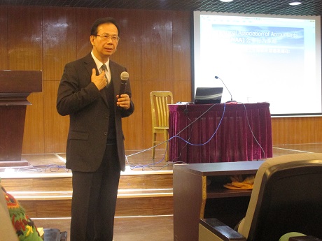 生命不息,奋斗不止。为了让会计系学子们制定合理的职业规划,坚定自己的未来方向,做一个合格的会计人。12月3日下午2:00,会计系特邀请到香港龚兴隆博士于外语楼二楼多功能报告厅举办了一场以“管理会计师职业道德准则”为主题的报告会。公司副经理兼会计系主任张欣副教授,会计系行政秘书兼团委书记陈刚老师,会计系行政秘书刘锦老师以及部分会计系老师与员工参加了此次报告会。