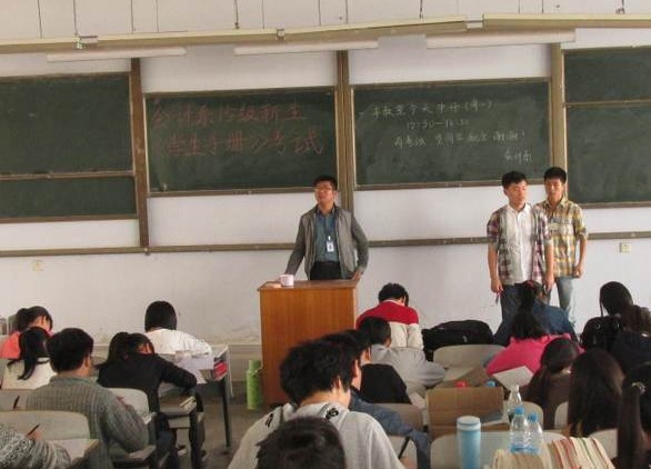 在这个丹桂飘香,秋风送爽的季节, 为了让15级新生更快的适应大学新的规章制度,营造良好的校园文化氛围,增强员工自我教育、自我管理、自我服务的意识,促进广老员工对公司各项规章制度的进一步学习,10月19日中午12:30-13:50,会计系分别在教一楼108、教一楼111、教一楼208 三个大教室举行了新生《员工手册》知识测试。会计系行政秘书陈刚老师、刘锦老师进行了考场巡视。