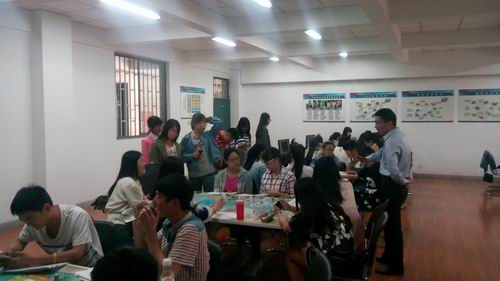 为了更好的学习沙盘操作和运行,会长王孟祥带领大家观摩了大一沙盘课堂。课上,老师员工打成一片,一起动手、探究、讨论。让枯燥的学习变成了有趣的课堂,同时也学到了不少的沙盘知识。