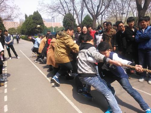 为了丰富会计系团学会成员们的课余生活,增进各部门之间的交流,培养团学会各部门的团队协作精神,2015年4月8日中午12:30,由会计系团学会主办、体育部协办的会计系团学会第四届拔河友谊赛在公司体育馆北门外羽毛球场正式举行,会计系行政秘书兼团委书记陈刚老师、团委副书记王纯、员工会主席刘乾坤、社联理事长夏凯等出席了本次活动现场,亲自为同学们加油打气。