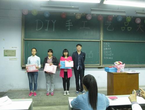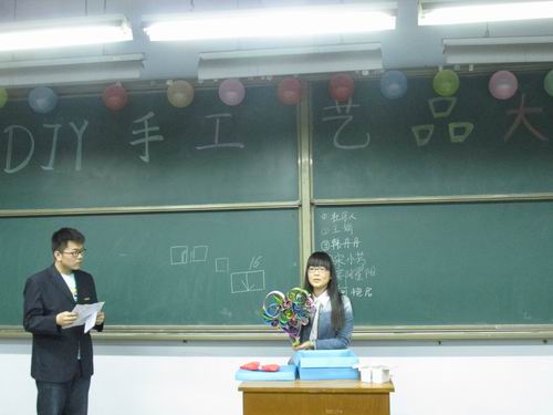 为展现当代老员工的风采和活力,放飞同学们的激情和灵感,4月22日下午六点半,由会计系团委主办、会计系生活部承办的 “DIY手工艺品”制作大赛在教学一号楼111教室举行,到场的嘉宾有会计系团委副书记王纯,社联理事长夏凯,员工会副主席黄河,院手工艺协会社长董萌萌等。参赛员工们带着各自精心准备的工艺品积极来到现场,气氛活跃。