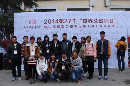 河南省原副省长、河南省慈善总会会长李志斌、河南省原宣传部副部长刘富民、金翅公益联盟主席郭红、金翅公益大使(感动中国2006年度人物)王百姓、著名曲剧表演艺术家王秀玲、金翅公益大使(河南书画学会主席)刘尚忠等与金翅公益大使以及加入“艾”的代言的来自中原各行各业的爱心人士、公益达人1000多人齐聚郑州德亿歌剧院,与中国新闻社、新华网、中国网、中国日报网、中国交通报、消费日报、河南电视台、河南法制报、河南人民广播电台、郑州日报、郑州晚报、郑州电视台、郑州人民广播电台等多家主流媒体共同见证了这一时刻,并一同观看中原首部公益微电影——《赎》的首秀! 会计系团委书记陈刚老师携会计系青年志愿者协会一行十五人应邀参加了首映礼。