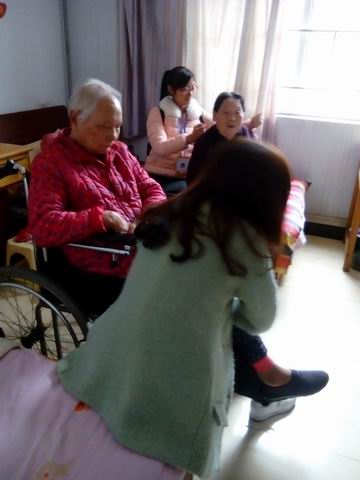 早上七点,志愿者们就在校门口整装待发,在经历了一个多小时的车程后,志愿者们来到了此次活动的目的地——管城回族区老年公寓。经理崔淑艳以及护理主任平建荣阿姨热情的欢迎了志愿者们的到来,并就此次活动的注意事项为大家做了详细介绍。随后志愿者们有序的分组进入老人的房间,帮老人们打扫卫生、整理物品,并在护理员的指导下为老人们做按摩、陪老人们聊天、缓解压力等。