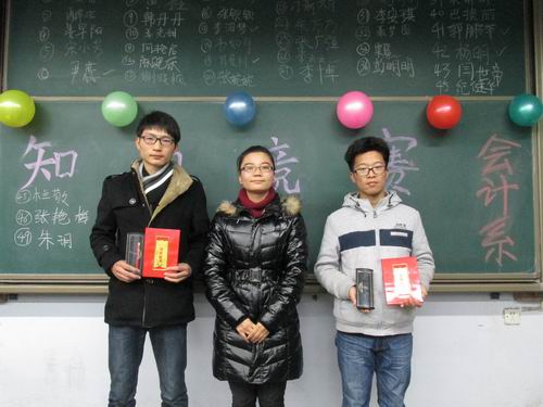 决赛的限时答题环节把比赛带到了高潮,选手们争分夺秒,对答如流,不浪费一分一秒,几位选手的得分一时间相持不下、难分伯仲。最终,谢幸汝等三名同学获得三等奖,黄鑫等两名同学获得二等奖,朱芳芳同学获得一等奖;14会本一班获得“最佳参与奖”,14会电专六班获得“道德风尚奖”。持续了三个多小时的精彩竞赛也在观众们的掌声中落下了帷幕。